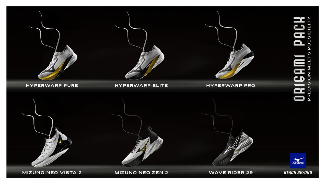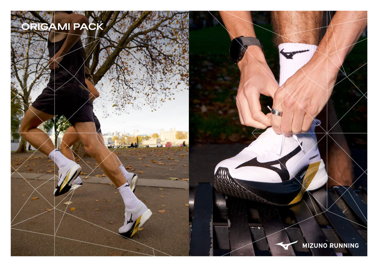 Konsten att origami är minimalistisk, men dess skönhet har inga gränser. Enkla veck som skapar oändliga former. En metafor för de okända möjligheterna i den fridfulla löparens flöde. Mizunos löparskor genomsyras av designprinciper som bygger på teknisk enkelhet och gränslös prestanda, med tydliga paralleller till origamikonsten. Djärva, raka linjer framhäver mellansulans geometriska betydelse, medan särskild grafik på innersulan ytterligare förmedlar essensen av origami. Precision möter möjligheter. Teknisk enkelhet möter oändliga tillfällen. Origami Pack